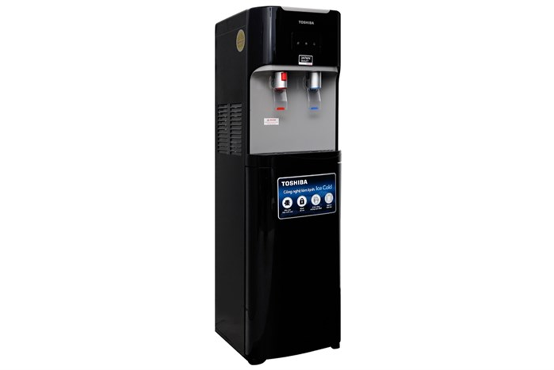 Cây nước nóng lạnh Toshiba thiết kế với màu đen sang trọng, kiểu dáng nhỏ gọn, hiện đại, dùng đẹp trong cả không gian kiến trúc gia đình, văn phòng, nhà hàng – khách sạn, khu du lịch,...