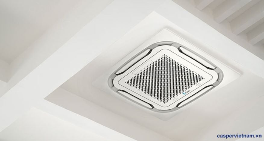 Điều hòa Casper 24000btu CC-24TL22 được thiết kế đơn giản với thân dàn lạnh hình vuông rộng 835 x 835mm. Mặt nạ có kích thước 950 x 950mm, hướng gió thổi đa hướng, giúp luồng không khí mát được luân chuyển nhanh và đều hơn.