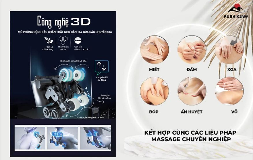 Mô phỏng chân thật như bàn tay của chuyên gia: công nghệ massage hiện đại giúp tác động lên cơ thể theo cả chiều dài, chiều rộng và chiều sâu, tăng chuyển động theo không gian 3 chiều, hỗ trợ chăm sóc sức khỏe tốt hơn cho khách hàng.