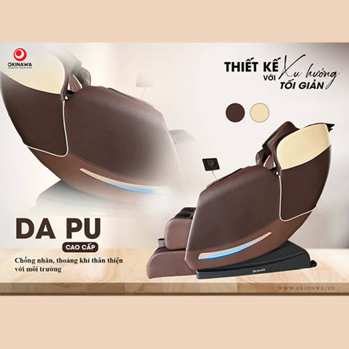 Thiết kế sang trọng: Ghế massage toàn thân Okinawa OS – 711 thiết kế da PU cao cấp với tông màu nâu đỏ sang trọng giúp chống nhăn, thoáng khí và thân thiện với môi trường. Chất liệu da này giúp người dùng dễ dàng sử dụng, không gây kích ứng da và dễ dàng vệ sinh.