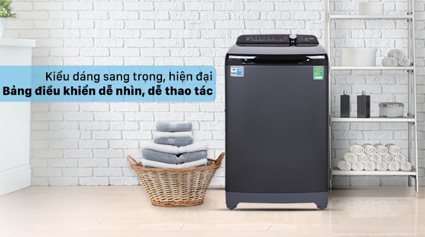 Máy giặt Aqua được thiết kế màu đen sang trọng, hiện đại. Thiết kế bảng điều khiển nằm sau với góc nghiêng vừa phải giúp người dùng dễ quan sát, điều khiển và nút xoay chọn chế độ tiện lợi, dễ sử dụng.