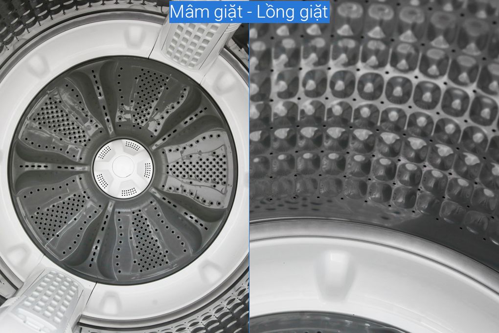 Công nghệ giặt:Lồng giặt Pillow, Mâm giặt kép Twin Pulsator, Diệt khuẩn khử mùi Nano Ag+