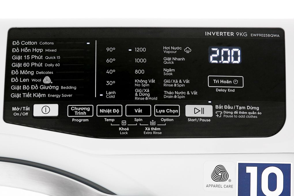 Thông số kỹ thuật chi tiết Máy giặt Electrolux Inverter 9 kg EWF9025BQWA