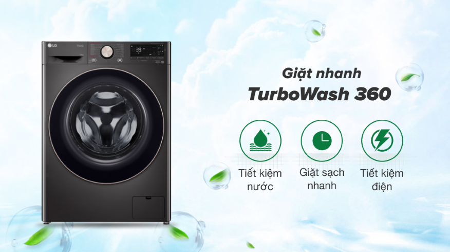 - Giặt nhanh TurboWash360 với vòi phun 3D hoạt động phun đa chiều từ 4 hướng bên trong lồng giặt giúp quần áo thẩm thấu nhanh bột giặt, tăng hiệu quả loại bỏ vết bẩn, quần áo được giặt sạch trong thời gian ngắn. Đồng thời, công nghệ này còn giúp tiết kiệm tối đa chi phí điện nước hàng tháng.