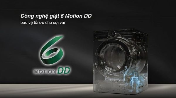 - Máy sử dụng công nghệ 6 Motion DD độc quyền từ LG, mô phỏng sáu chuyển động rửa tay gồm chà xát, nhào trộn, quay, đập, đảo và nén. Nhờ đó, quần áo được giặt sạch sâu hơn mà không gây tổn hại vải, đặc biệt hiệu quả với đồ tinh hoặc đồ len cần chăm sóc nhẹ nhàng.