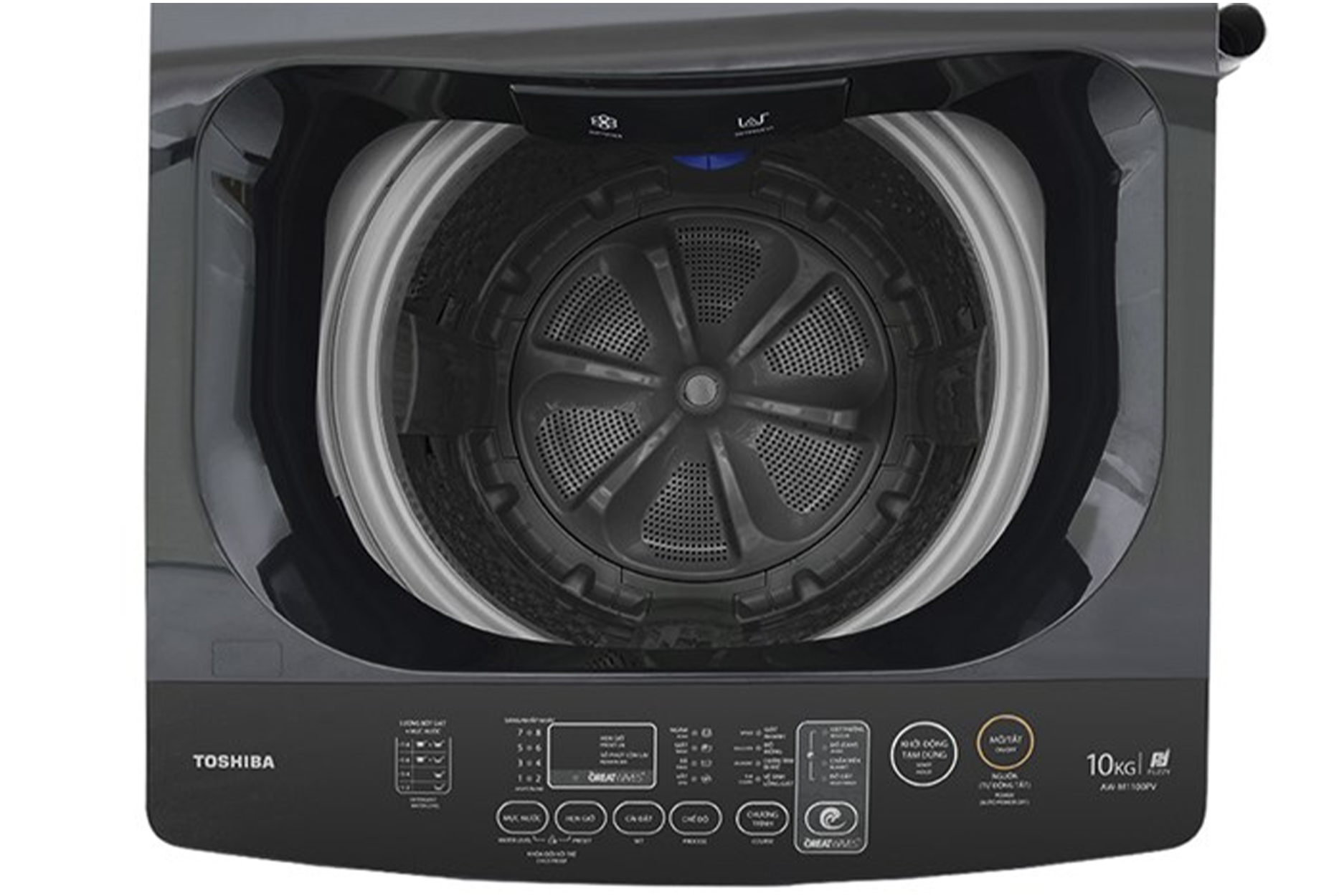 Máy giặt Toshiba 10 kg AW-M1100PV(MK) giặt quần áo sạch sẽ, chống xoắn rối với công nghệ giặt siêu sóng Greatwaves, công nghệ suy luận ảo Fuzzy Logic giúp tiết kiệm nước mà vẫn đảm bảo hiệu suất giặt, giúp cho thiết bị chạy êm ái, giảm hao phí điện năng, giặt đồ linh hoạt với 8 chương trình hoạt động khác nhau.