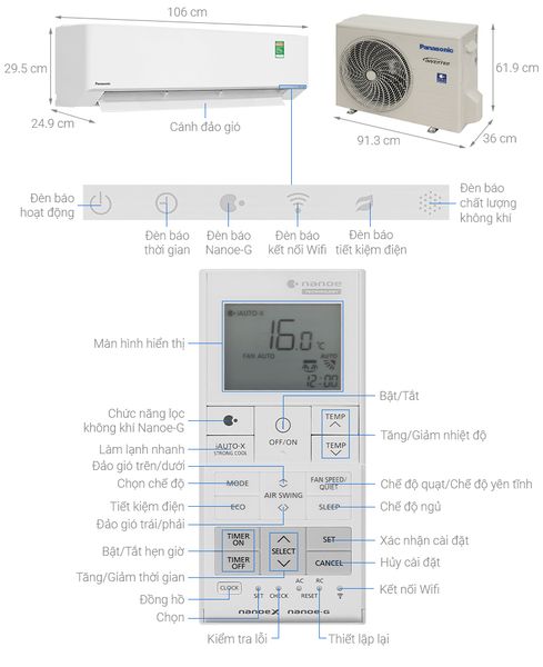 Máy lạnh Panasonic Inverter 2 HP CU/CS-XU18BKH-8 được trang bị đa dạng các tiện ích: