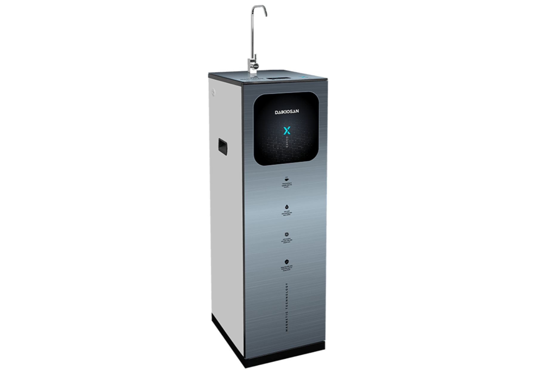 Đặc biệt, Máy lọc nước từ trường X-Guard Daikiosan DSW-36011M sở hữu Lõi điện từ trường bằng cách cho nước đi qua nam châm vĩnh cửu được sản xuất bằng công nghệ đặc biệt, có thể kích hoạt và ion hóa các phân tử nước để thay đổi cấu trúc của nó thành hình lục giác. Nhờ vậy tạo ra nước từ trường, nước này tốt đến nỗi được ví như là nước kỳ diệu - nước có bản chất gần với trạng thái nguyên bản của nước tự nhiên được chuyển hóa bởi từ trường do lõi trái đất tạo ra.