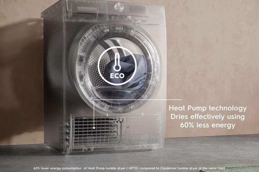 Công nghệ Bơm nhiệt giúp quần áo bền lâu hơn bằng cách sấy khô ở nhiệt độ thấp hơn nhiều so với máy sấy thông thường. Không chỉ chăm sóc quần áo mỏng một cách hiệu quả, công nghệ sấy này còn tiết kiệm năng lượng lên đến 60%.