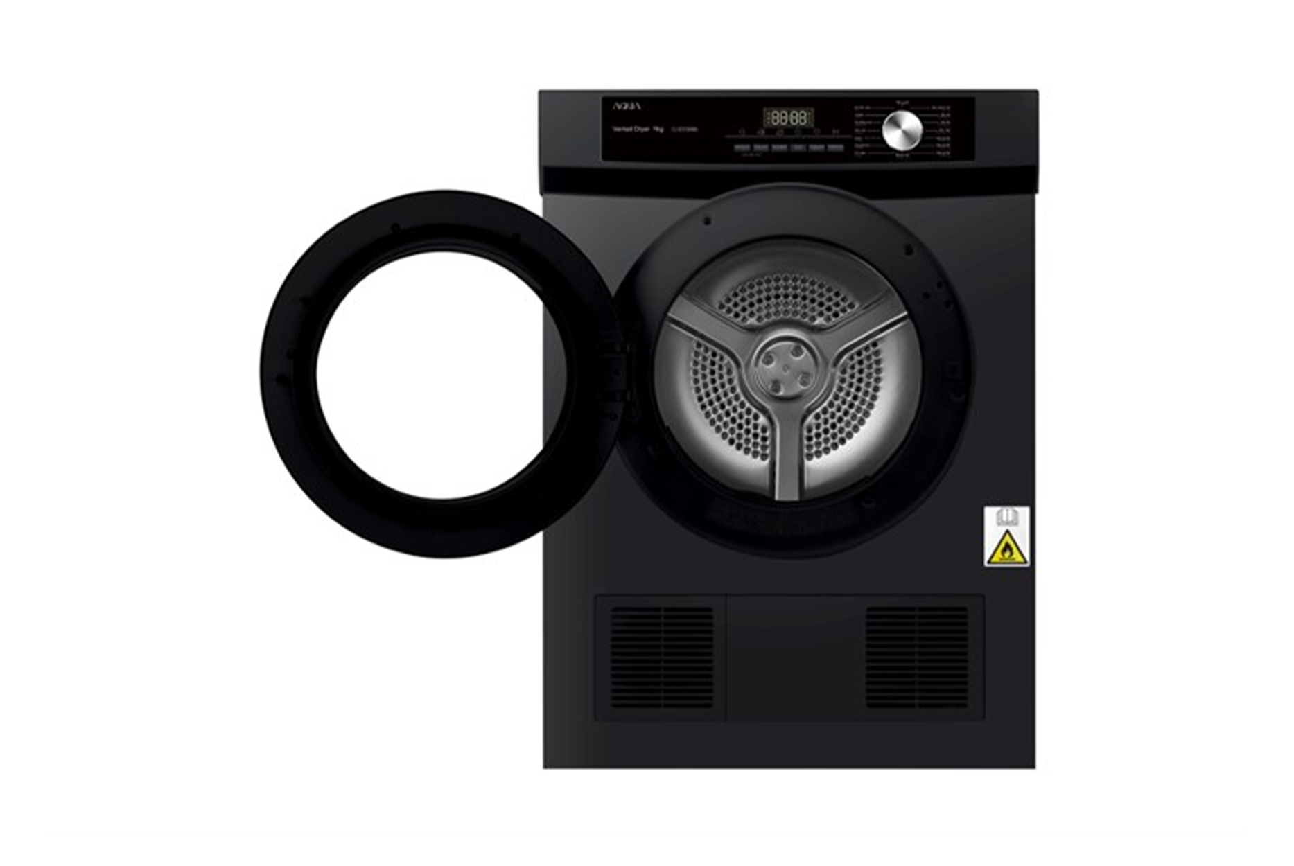 - Máy sấy Aqua sở hữu thiết kế màu đen sang trọng, nhỏ gọn, tương thích thiết kế với các loại máy giặt lồng ngang thông dụng.