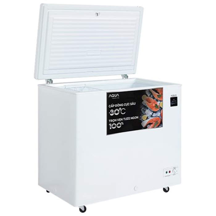 - Tủ đông Aqua 301 lít trang bị công nghệ làm lạnh 3D cho luồng khí lạnh đi từ dưới lên, đến mọi ngóc ngách bên trong lòng tủ đông, giúp thực phẩm được làm lạnh ở mọi vị trí.