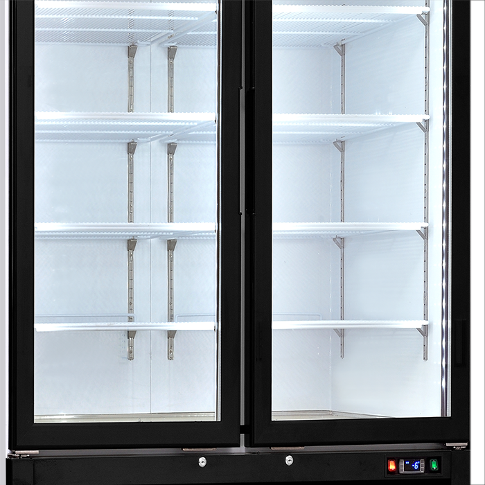 Kính của tủ là loại mặt kính 3 lớp hút chân không kết hợp sử dụng công nghệ sấy kính điện trở âm giúp cho mặt kính luôn được khô ráo, không đọng sương, phù hợp cho việc quan sát thực phẩm trưng bày trong tủ.