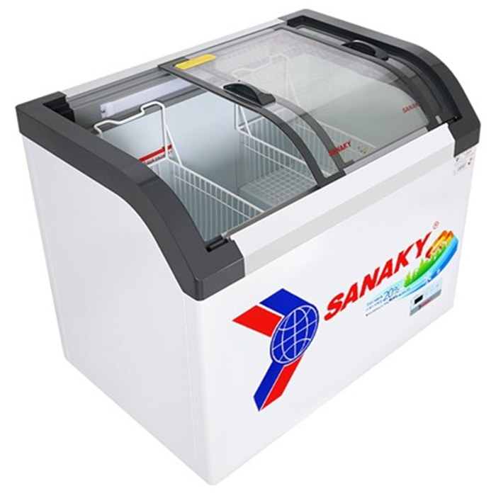 Tủ đông Sanaky 280 lít VH-3899KB thiết kế 2 cửa lùa cong bằng kính cường lực bền chắc, công nghệ làm lạnh trực tiếp và dàn lạnh bằng đồng giúp giữ lạnh thực phẩm hiệu quả, đi kèm khóa cửa tủ, giỏ đựng đồ, lỗ thoát nước, đồng hồ điện tử cho bạn sử dụng thiết bị tiện lợi hơn.