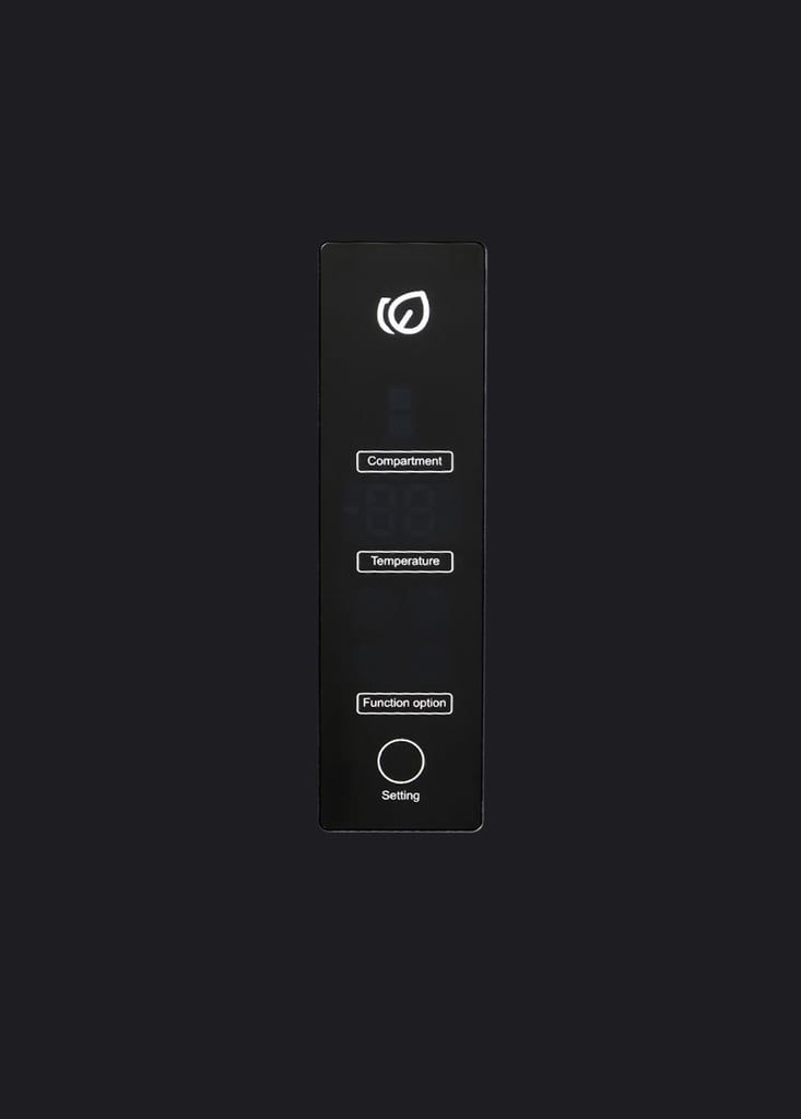 Bảng điều khiển được thiết kế dạng cảm ứng và bố trí phía bên ngoài cánh cửa ngăn đá, giúp bạn dễ dàng quan sát nhiệt độ và các chức năng mà tủ lạnh đang sử dụng.