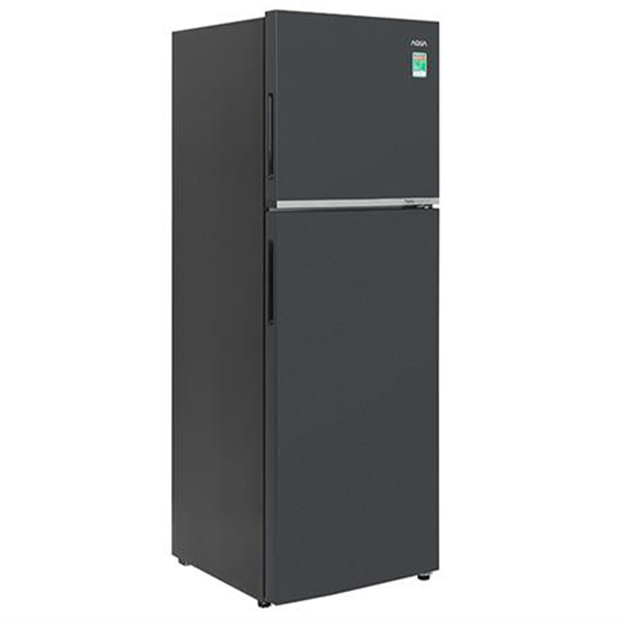 - Tủ lạnh Aqua được thiết kế theo kiểu tủ lạnh 2 cửa với phần cửa tủ làm từ mặt thép và toàn thân phủ màu đen xám chống bám vân tay. Thiết kế này không chỉ đảm bảo độ bền cao trong quá trình sử dụng mà còn giúp bạn dễ dàng vệ sinh chỉ với vài thao tác lau chùi đơn giản.