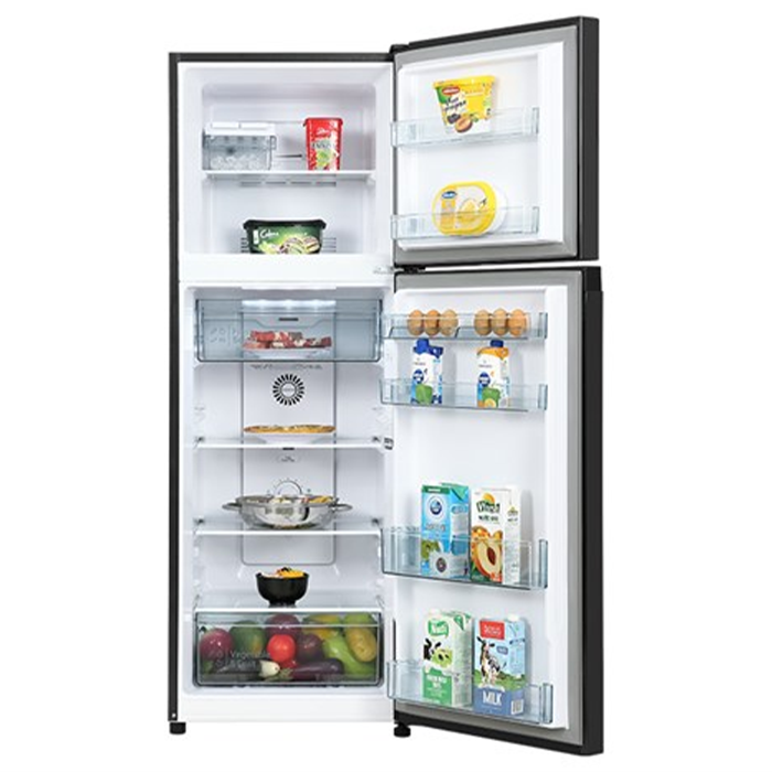 - Tủ lạnh Hitachi với thiết kế kiểu dáng ngăn đá trên quen thuộc với người dùng, tone màu đen dễ dàng kết hợp cùng với nội thất trong gia đình.