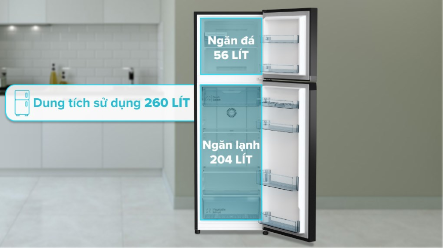 - Dung tích sử dụng 260 lít đáp ứng nhu cầu sử dụng cho gia đình 2 - 3 thành viên.