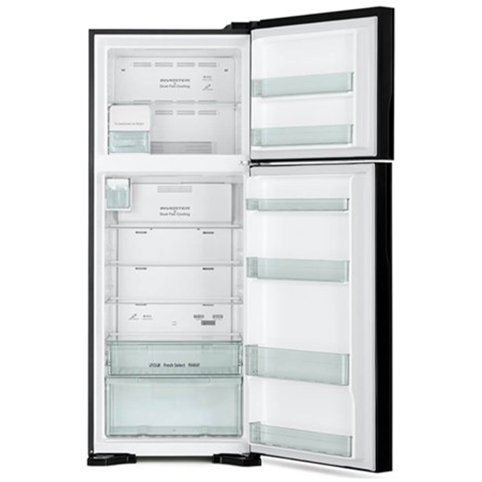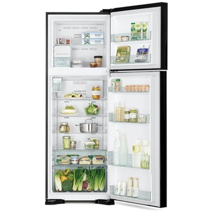 - Kiểu dáng: Hitachi R-FG560PGV8X GBK thuộc dòng tủ lạnh ngăn đá trên có 2 cánh cửa mặt gương sang trọng, tông màu đen lịch lãm phối hợp hài hòa với không gian nội thất bếp hiện đại.