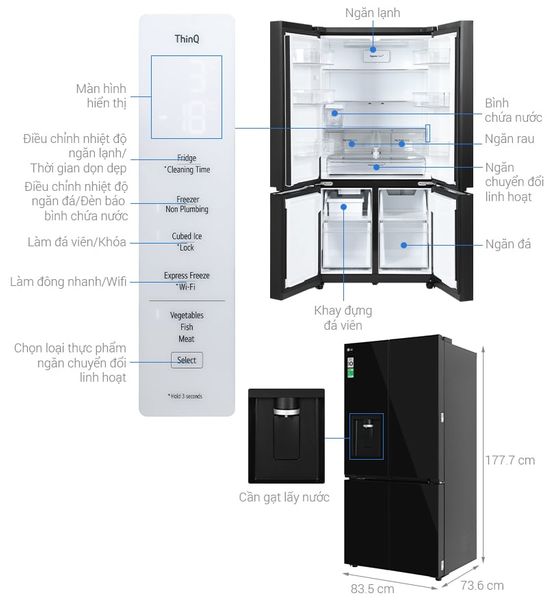 Với LG ThinQ, người dùng có thể kết nối tủ lạnh với điện thoại để kiểm soát hoạt động và thay đổi thiết lập cơ bản mà không cần thao tác trực tiếp trên tủ.