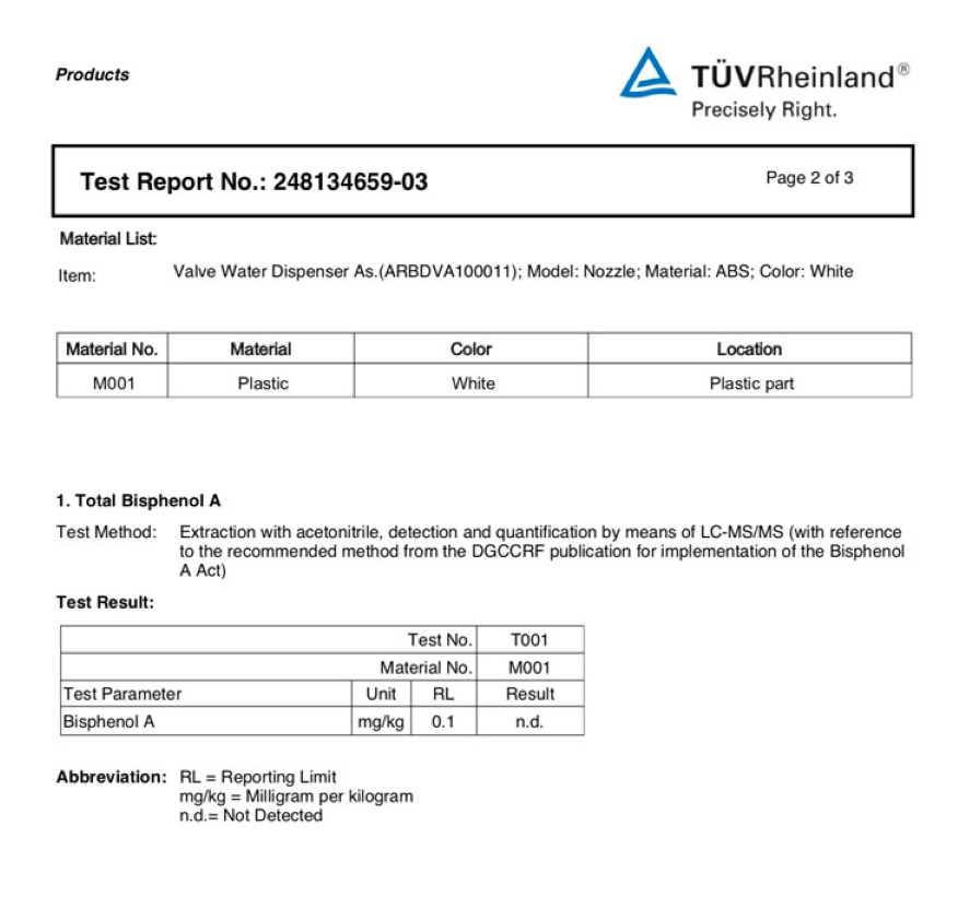 *Kết quả kiểm tra cho thấy hộp chứa nước không chứa chất BPA, được kiểm chứng bởi Tổ chức Quốc tế TÜV Rheinland có trụ sở tại Đức.