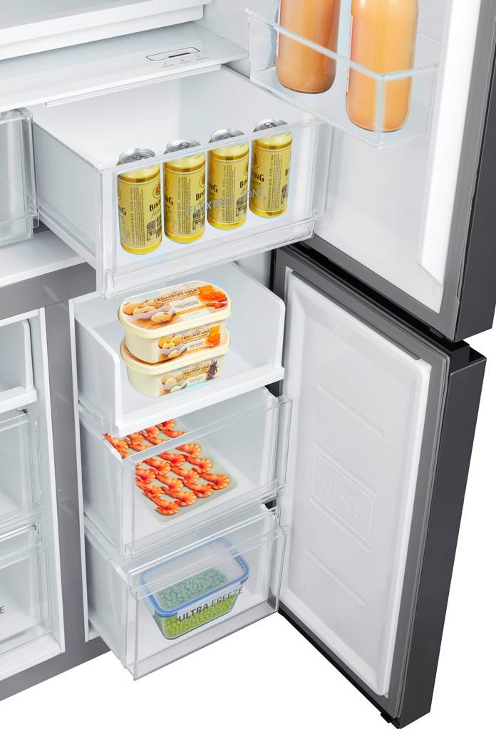 - Giữ nguyên hương vị với Flexible Zone: Ngăn cấp đông linh hoạt được tích hợp với cần gạt 3 chế độ: Cold drinks, Dry foods, Fruit & veg. Độ đa dạng trong trữ đông thực phẩm của cả gia đình được tăng lên.