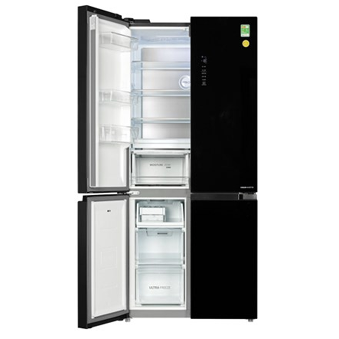 Cánh tủ được thiết kế mở với góc 90 độ thuận tiện khi kéo và lấy ra dễ dàng. Hộp thực phẩm thiết kế bằng nhựa cao cấp, nhờ đó, rau củ quả được bảo quản tốt, giữ độ tươi ngon, đẹp mắt. Ngăn mát với 2 mức điều chỉnh độ ẩm phù hợp với từng loại rau. Trong khi đó, ngăn cấp đông có 3 cấp làm lạnh giúp bạn lưu trữ thực phẩm trong thời gian dài nhưng vẫn giữ độ tươi. Ảnh 2. Tủ lạnh Toshiba GR-RF610WE-PGV(22)-XK với ngăn dự trữ linh hoạt